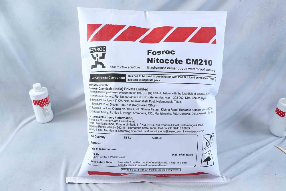 Nitocote CM210 two-component polymer modifi ed cementitious coating is supplied in pre-packaged form. The product is designed to be easily mixed on site using a slow speed drill fi tted with a mixing paddle and then applied to the substrate using either brush, trowel or spray. Roller application may also be used, however, fi nishing the surface with a trowel is recommended for best results. Nitocote CM210, available in grey and white, cures to form and elastomeric impermeable membrane