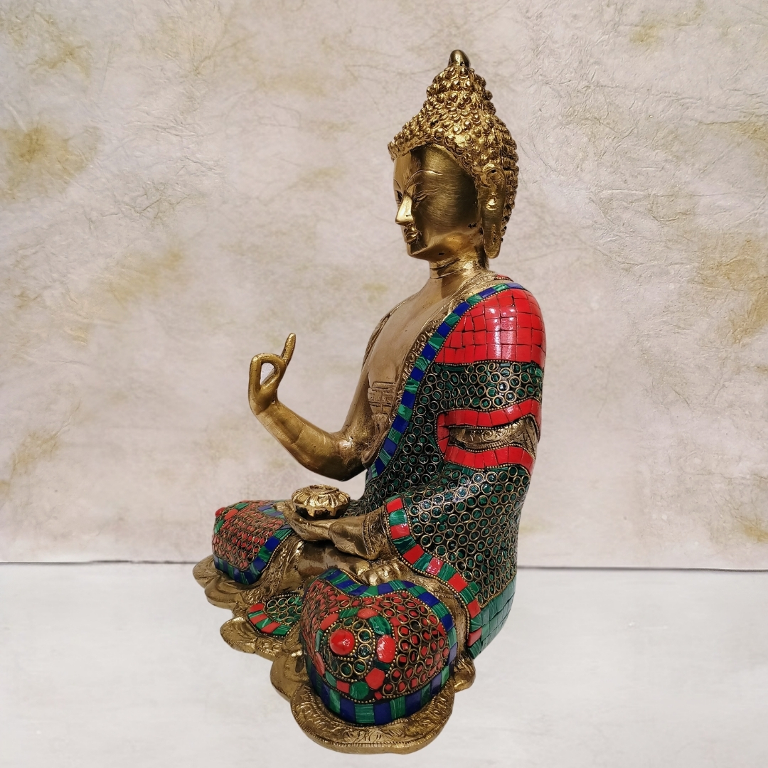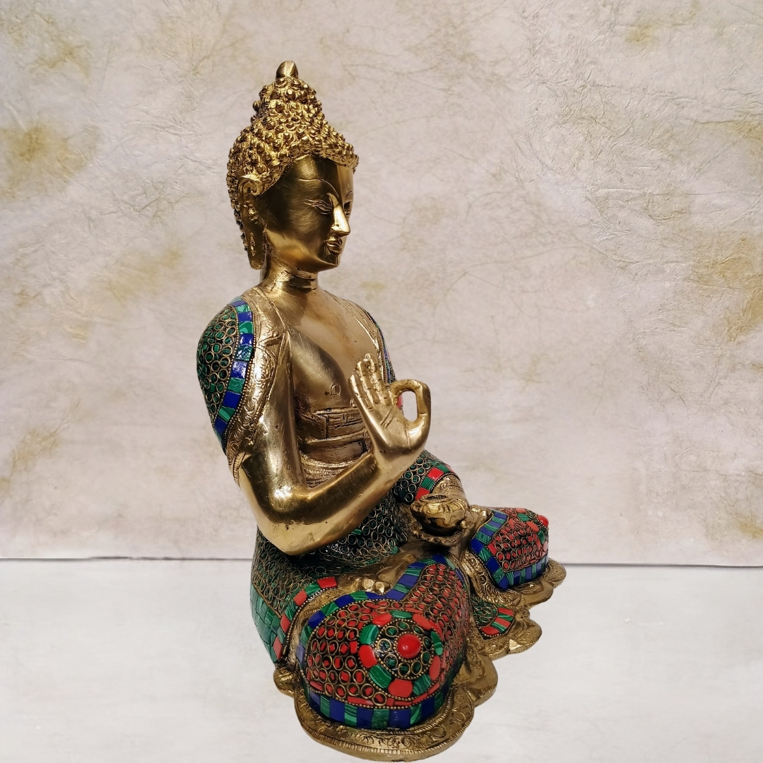 Invite tranquility into your space with this Buddha Sitting Idol, a timeless representation of peace, wisdom, and spiritual awakening. Crafted with intricate detailing and vibrant embellishments, this idol exudes a calming presence, making it ideal for meditation spaces and sacred décor.