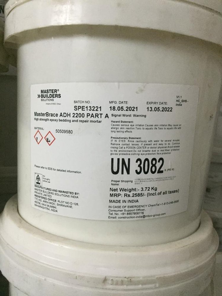MasterBrace ADH 2200 is a solvent free, high performance, non-slumping epoxy mortar and adhesive.MasterBrace ADH 2200 can be used as a bedding mortar, thixotropic adhesive and nonsag concrete repair mortar.