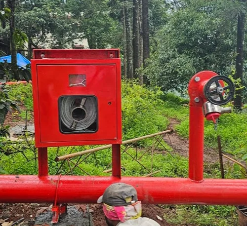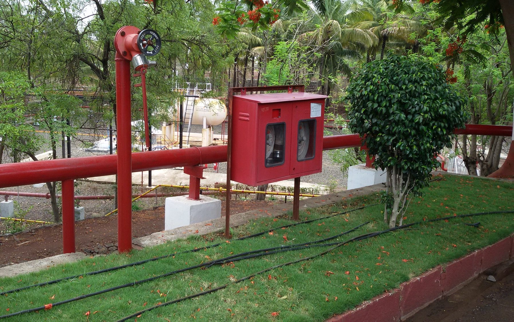 Yard hydrant system means device that is located outside of a building, equipped with a valved mechanism that controls the delivery of portable water.
